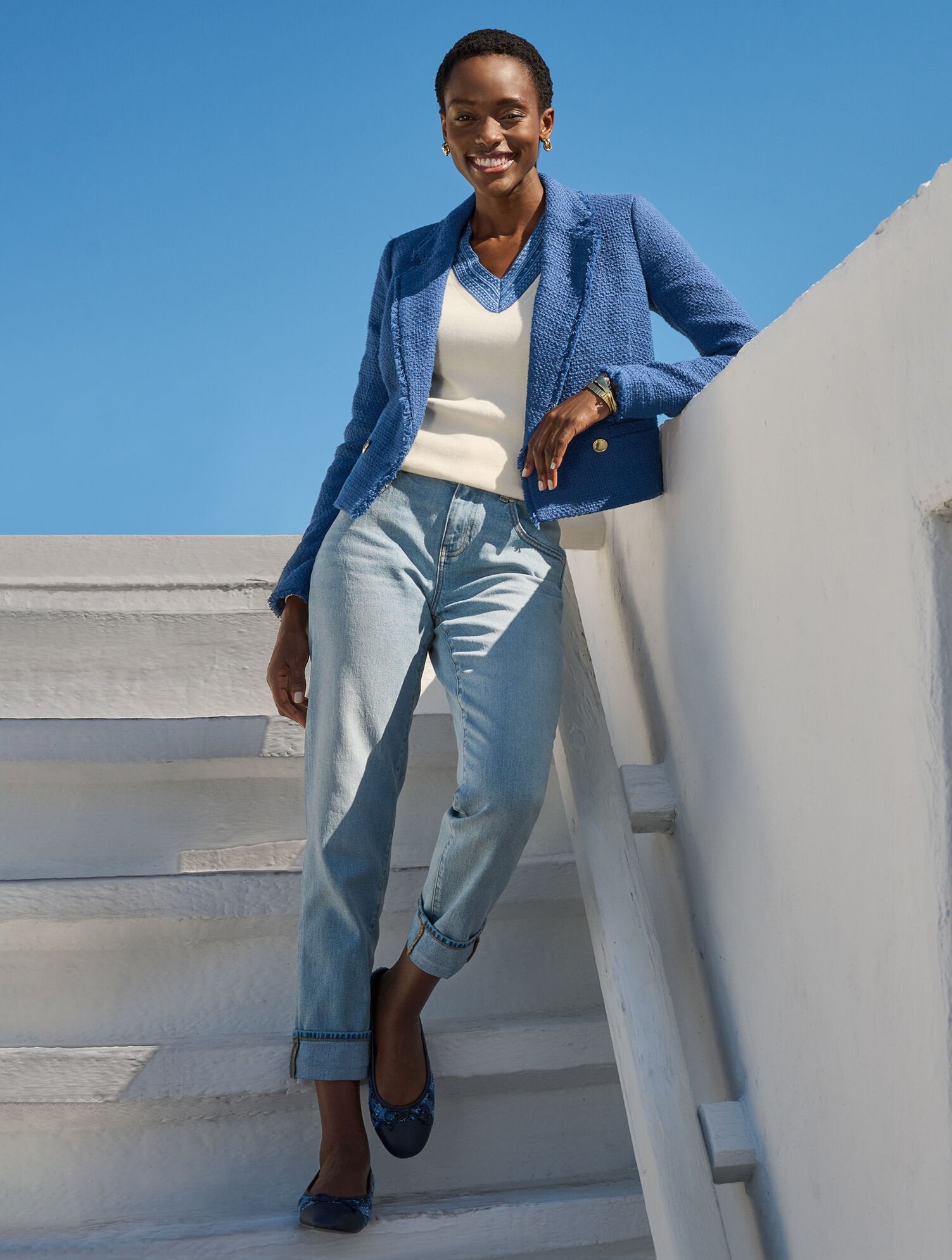 Polish your workwear look or elevate your weekend outfit with this richly textured blazer. Crafted from elegant tweed in a shorter length that looks great with skirts and high waist pants.