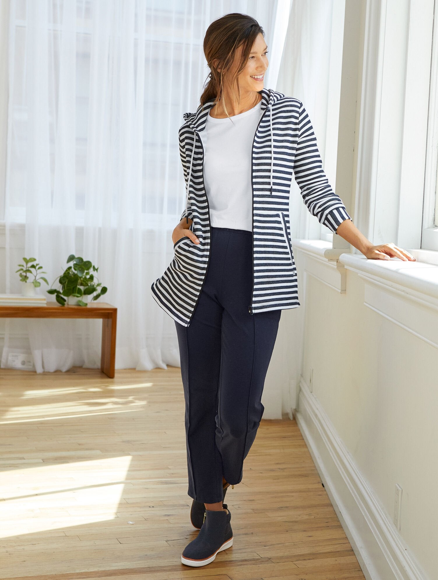recommend ordering in your usual pant size for the most comfortable fit. If you're between sizes, we