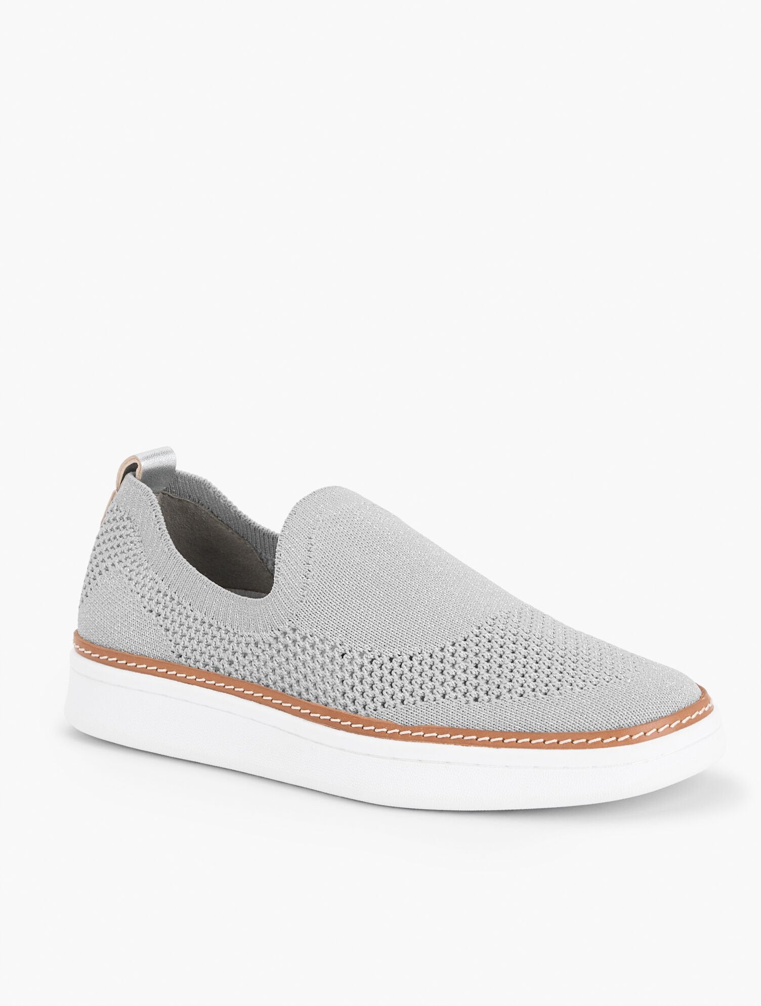 Comfort meets on-the-go style. Our essential slip-on sneakers are crafted from light, breathable metallic knit fabric and enhanced with a memory foam footbed that feels great all day. Heel and arch padding for extra support. Flexible outsole for improved stability. Ready to move.
