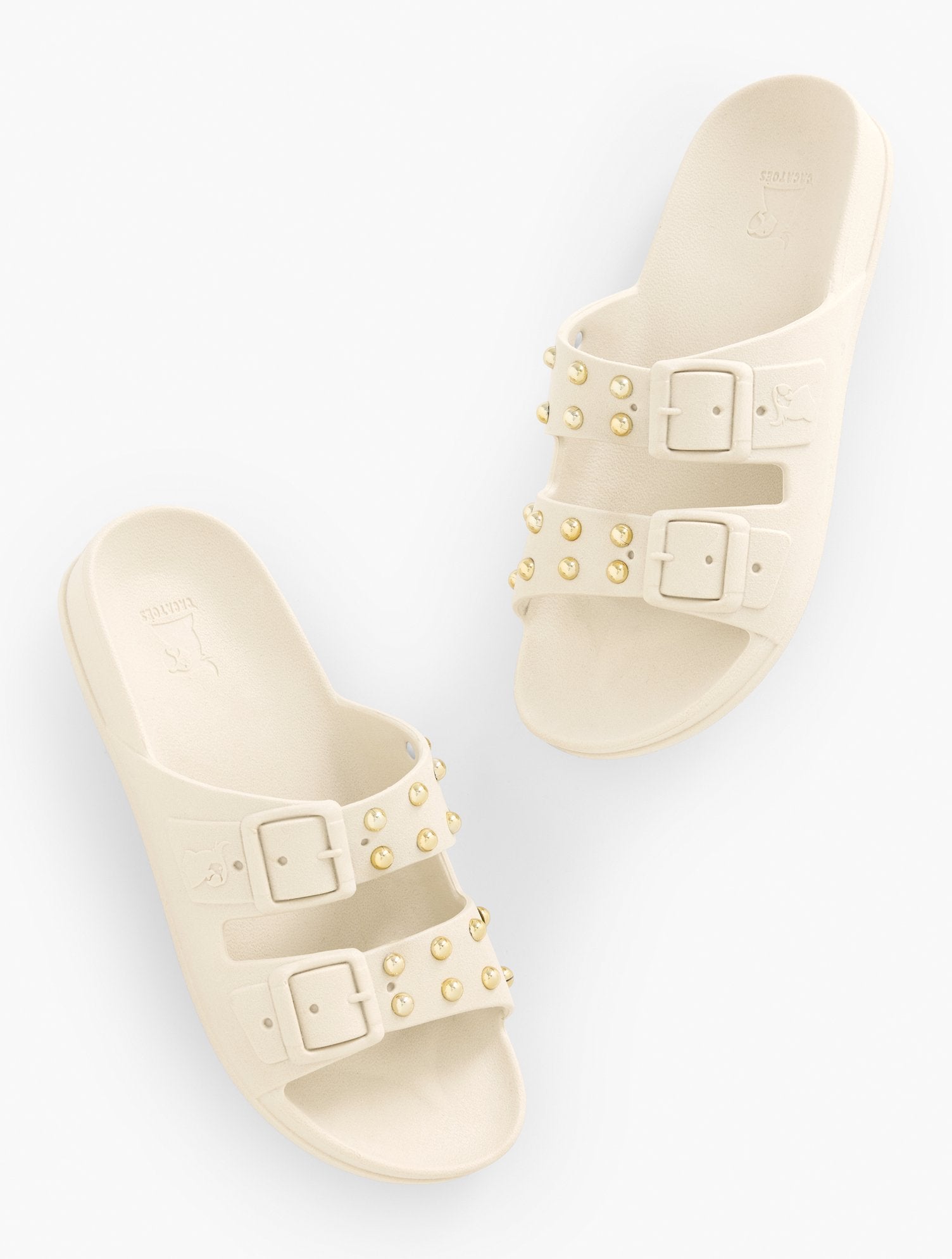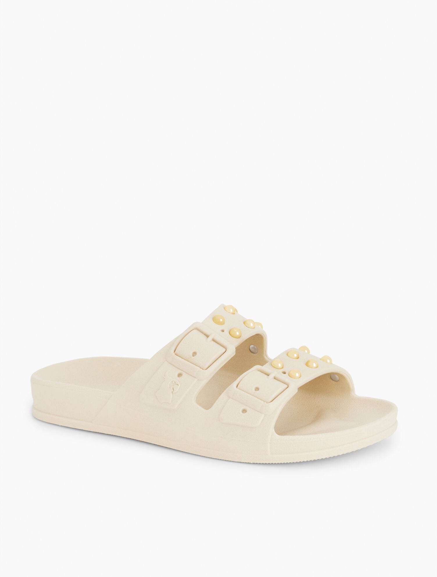 Effortlessly cool and unbelievably comfortable. Brighten up your outfits with the sleek studs on these slide sandals. Just right for your casual summer plans.
