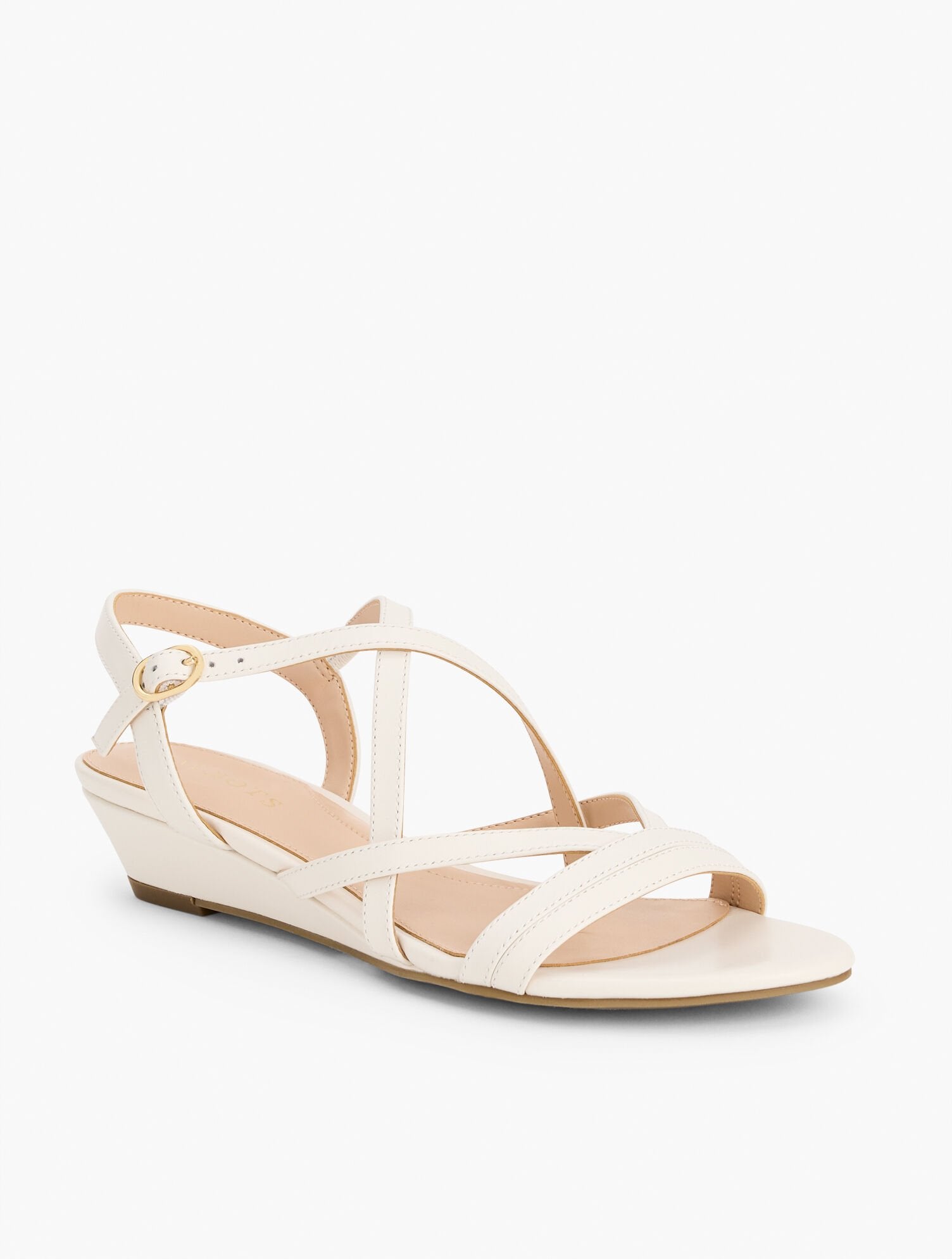 Elevate your spring and summer outfits with our versatile sandals. Crafted from soft nappa leather with a comfortable mini wedge. Enhanced with a memory foam footbed. Heel and arch padding for extra support. Flexible outsole for improved stability.