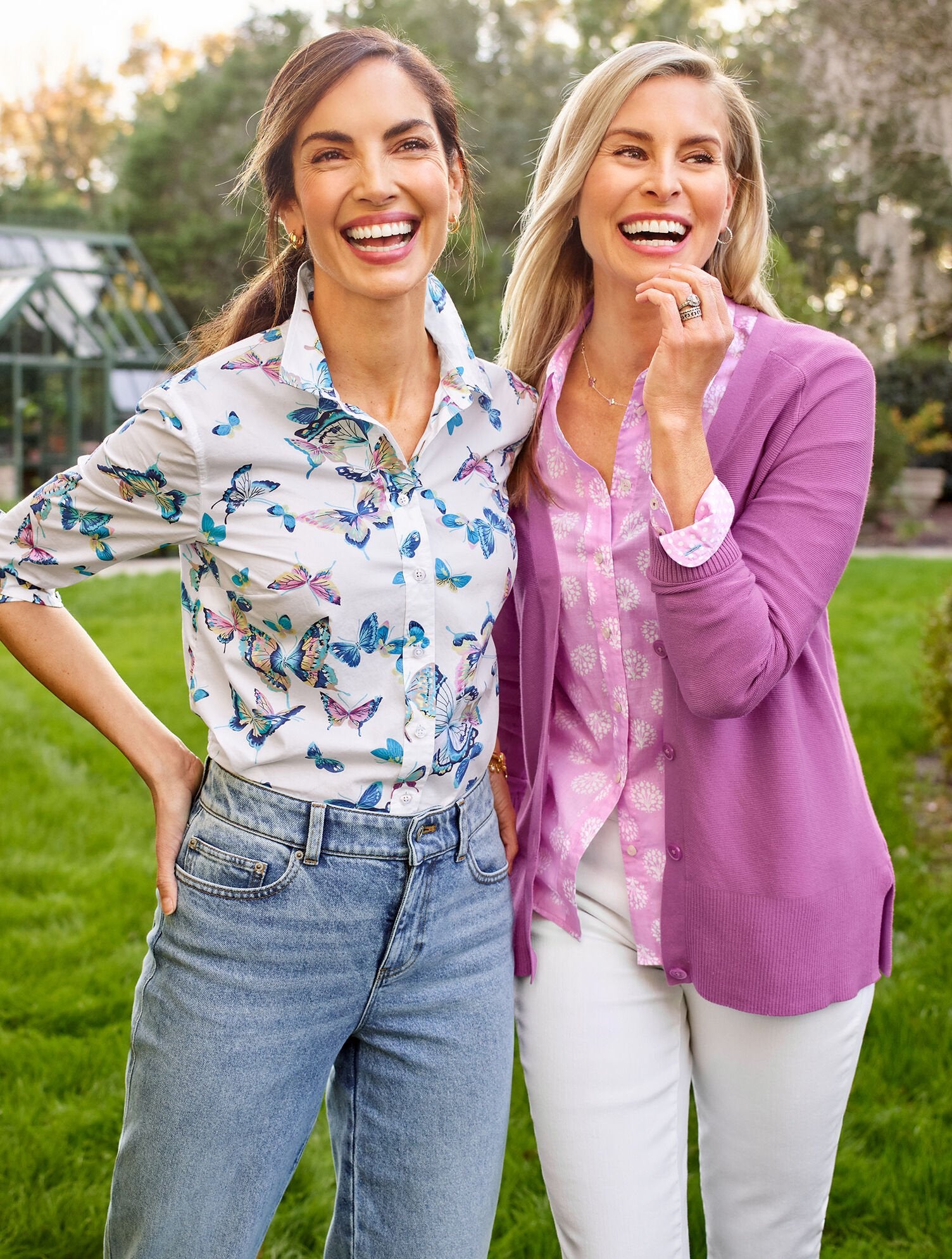Our classic button front shirt. Made from lightweight, breathable cotton in a lovely butterfly print. Tucked in or out, unbuttoned or buttoned.