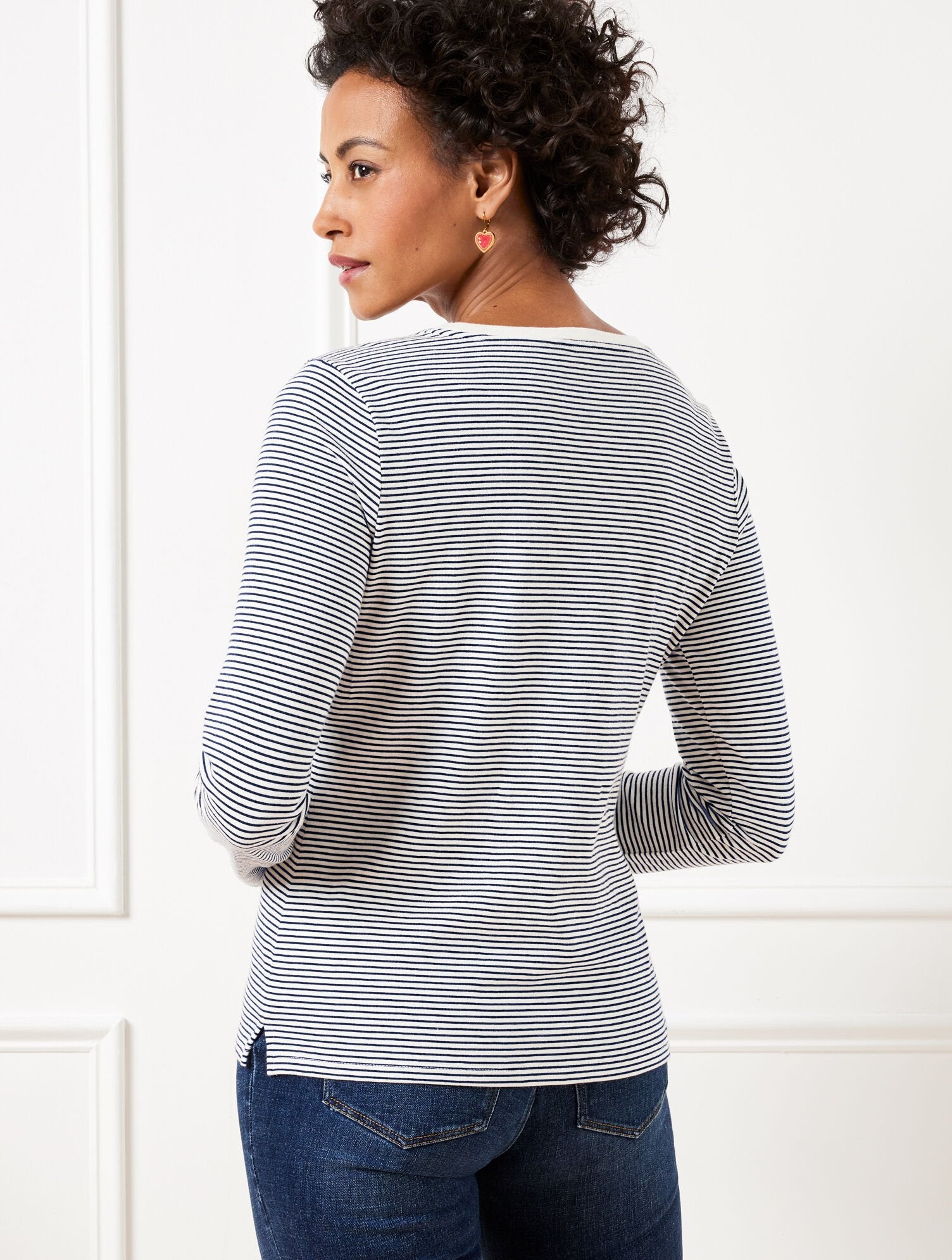 Allover heart embellishments sweeten up our ready-for-anything t-shirt. Crafted with timeless stripes and a classic crewneck.