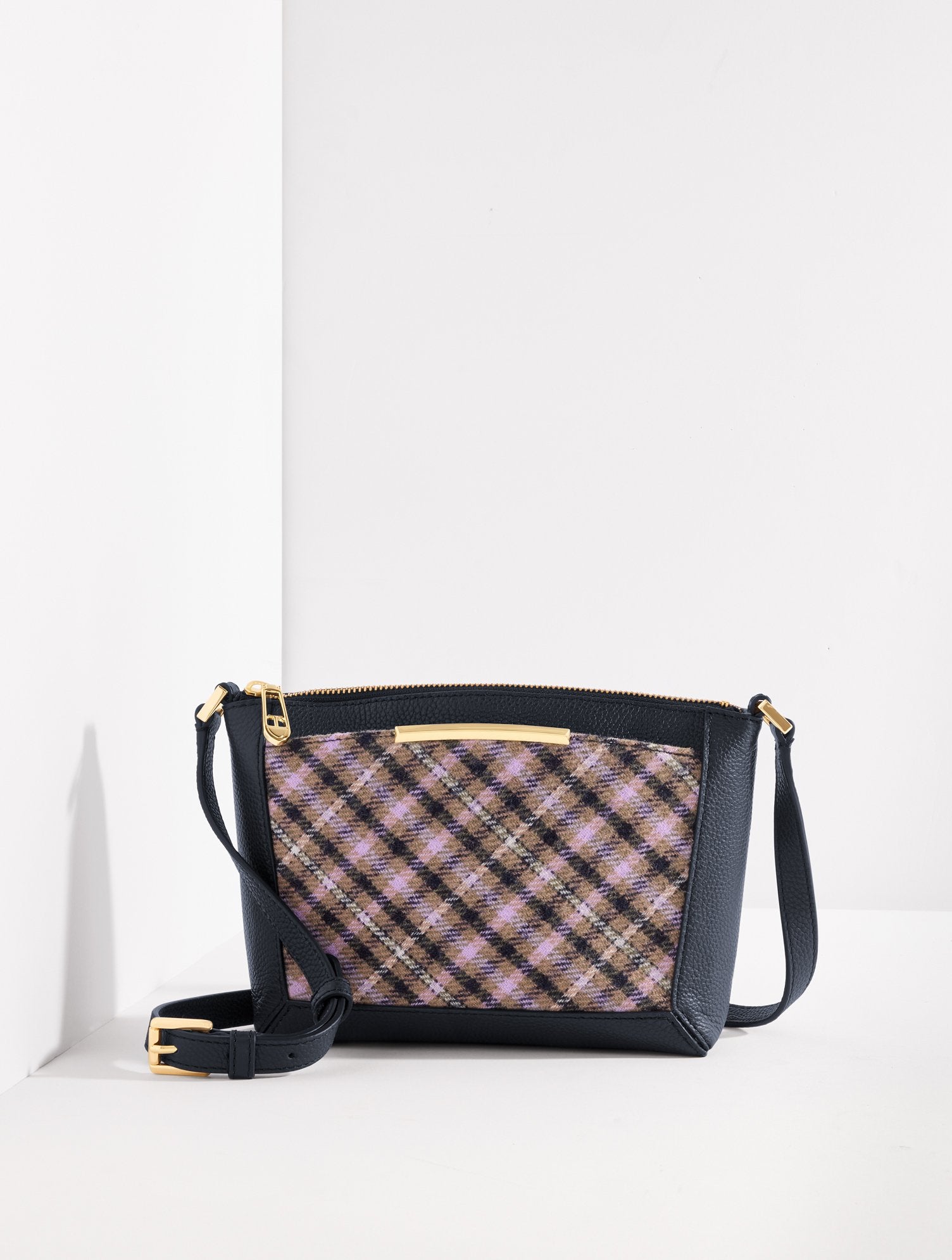 Sophisticated from day to night. Our versatile crossbody bag in luxe pebble leather with a timeless plaid pattern. Just the right size for carrying the essentials hands-free.