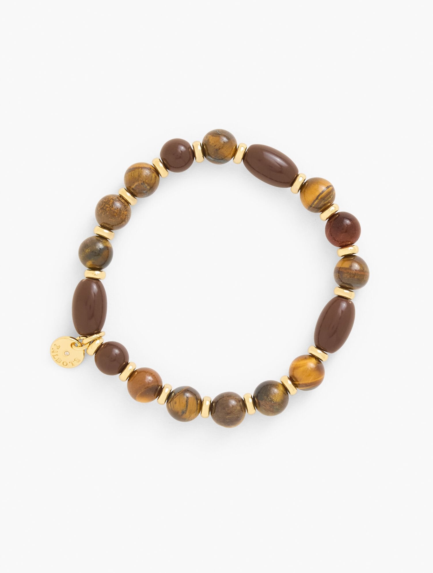 Elevate your wrist stack with this delicate tiger’s eye bracelet. Crafted in golden hues and strung on an easy on-off stretch band. Perfectly stackable. Simply stunning.