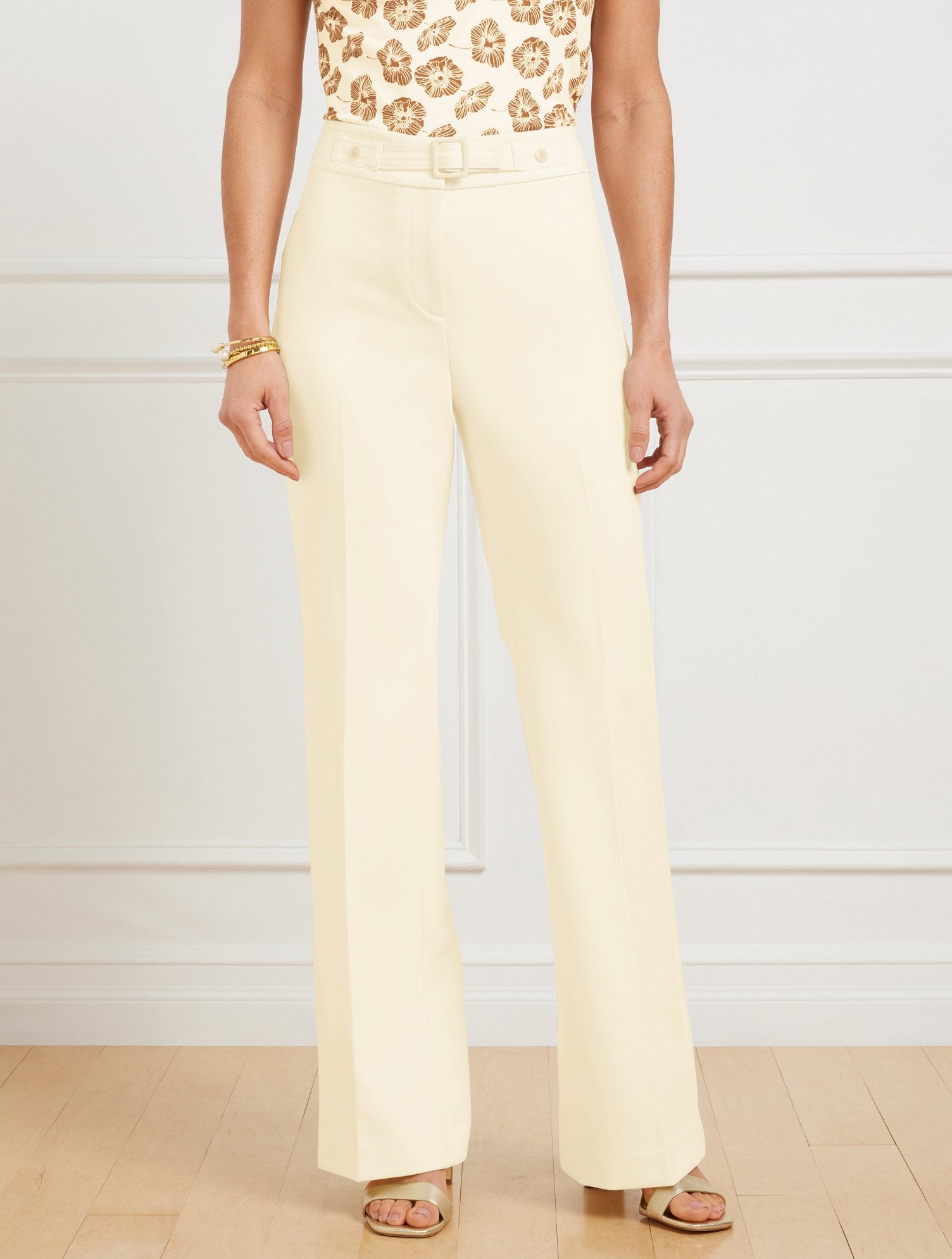 A belted waist elevates these ultra-flattering flare leg pants. Crafted from looks-good, feels-good twill. A modern must-have with a fabulous drape.