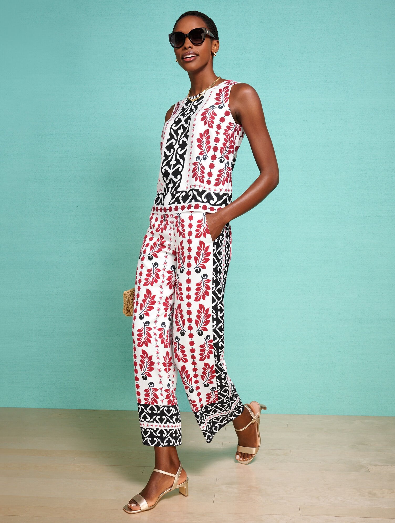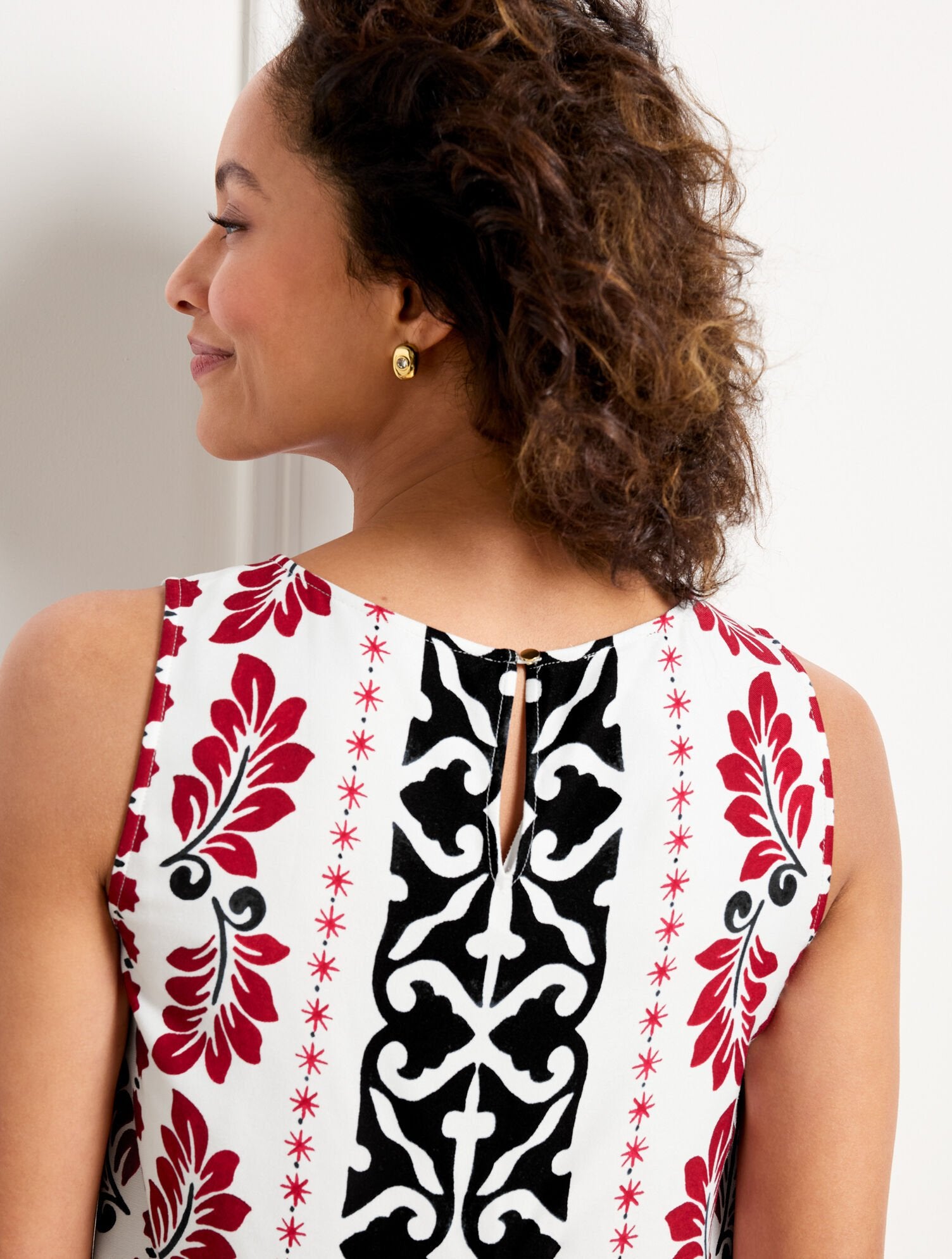 A sunny day favorite. Our ultra-versatile shell in a geometric palm border print. Just add your favorite jeans or shorts.