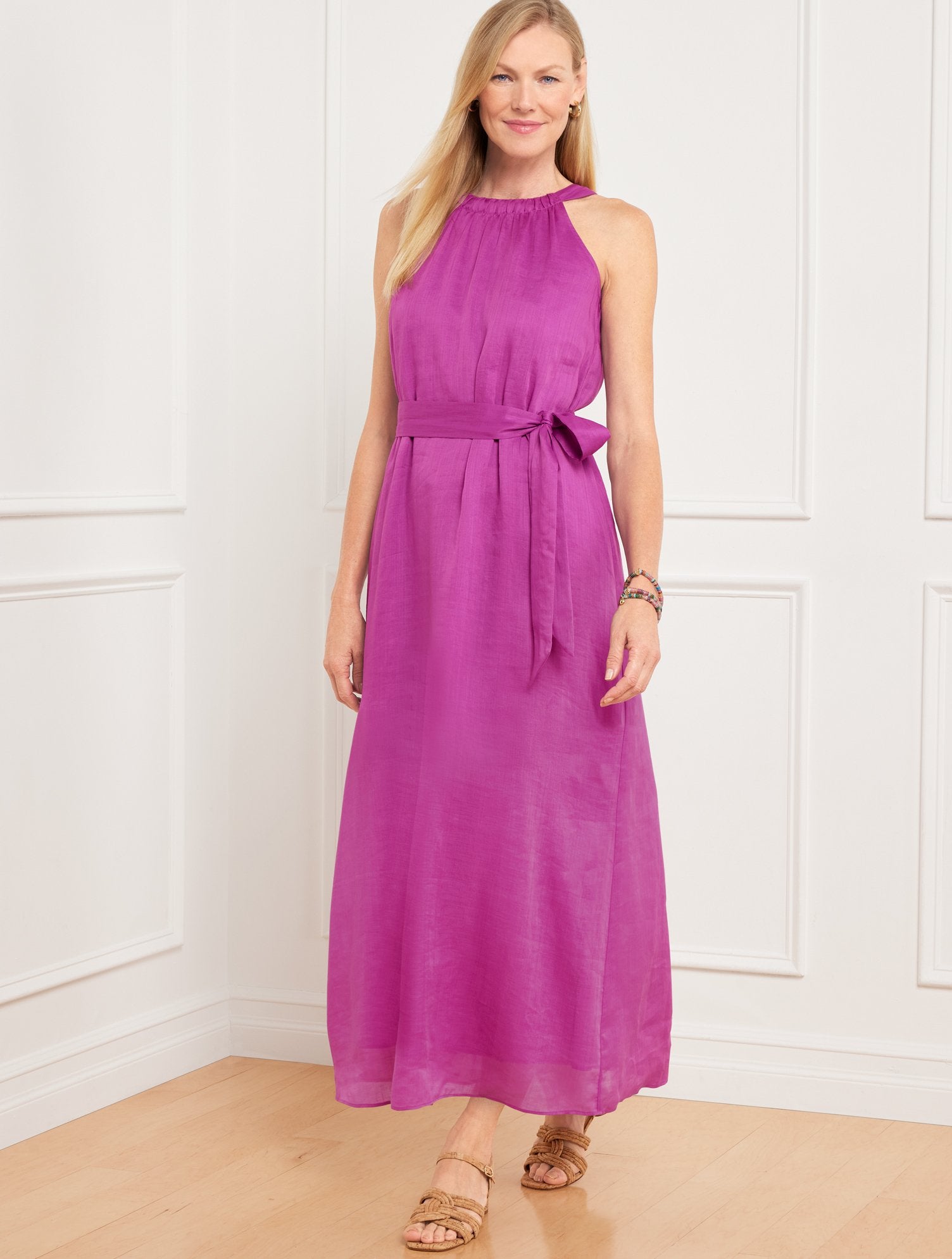 Our effortless halter dress is too elegant to pass up. Crafted with a flattering tie waist. Quite possibly the perfect flowy silhouette for summer.