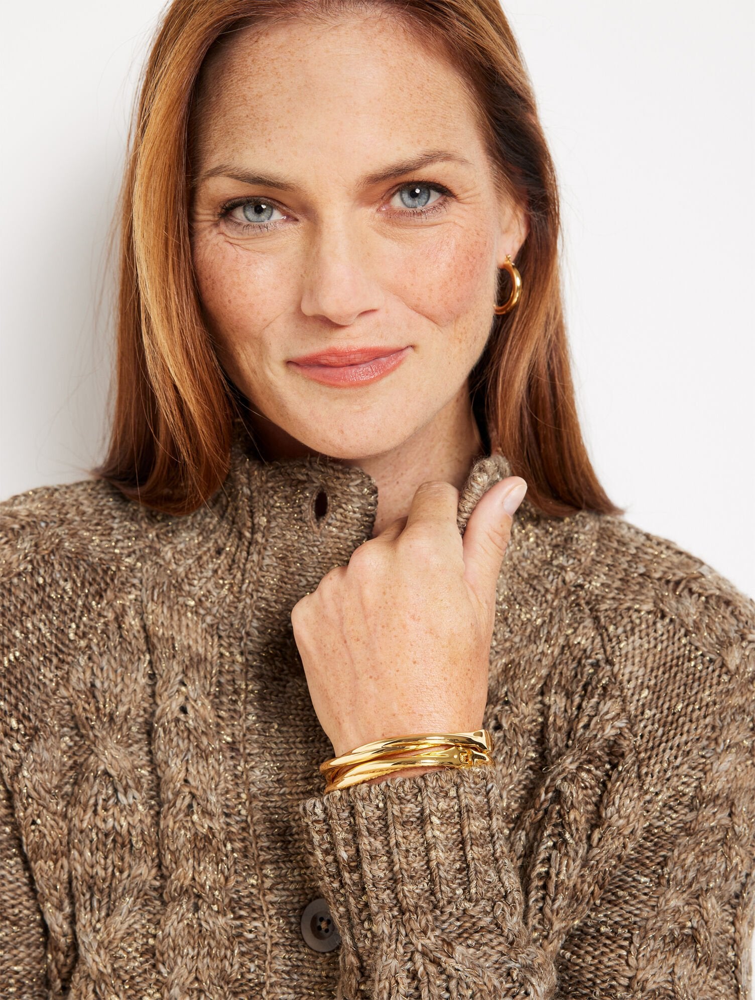 Our season-staple cardigan sparkles with rich metallic threads. Crafted with an elegant tweed finish, easy button front closures and patch front pockets.