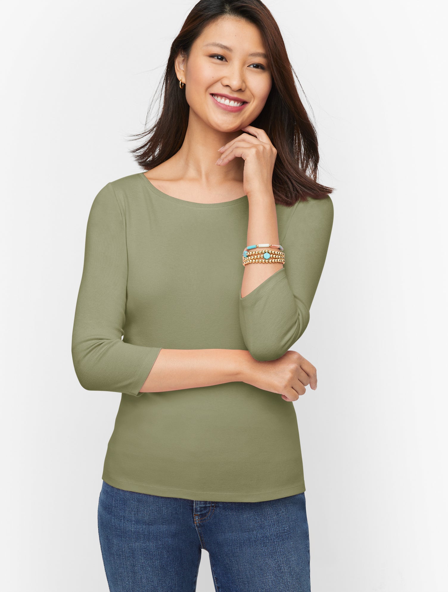 Crafted from our lightweight pima cotton, this classic three-quarter sleeve bateau is unbelievably soft and irresistibly comfortable.