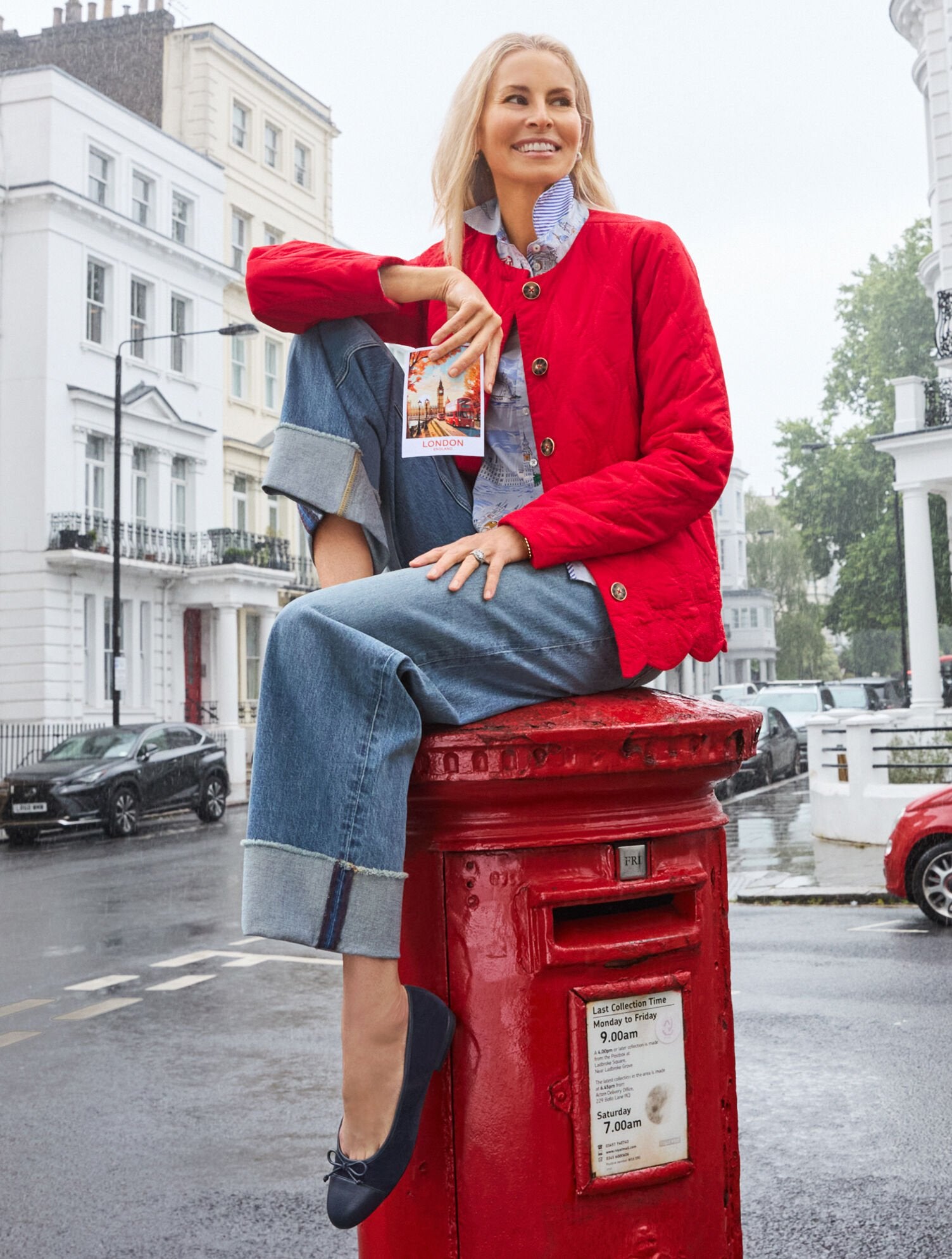 Our effortlessly chic quilted jacket. Elevated with a feminine scallop hem. Crafted in a collarless design with easy button front closures.