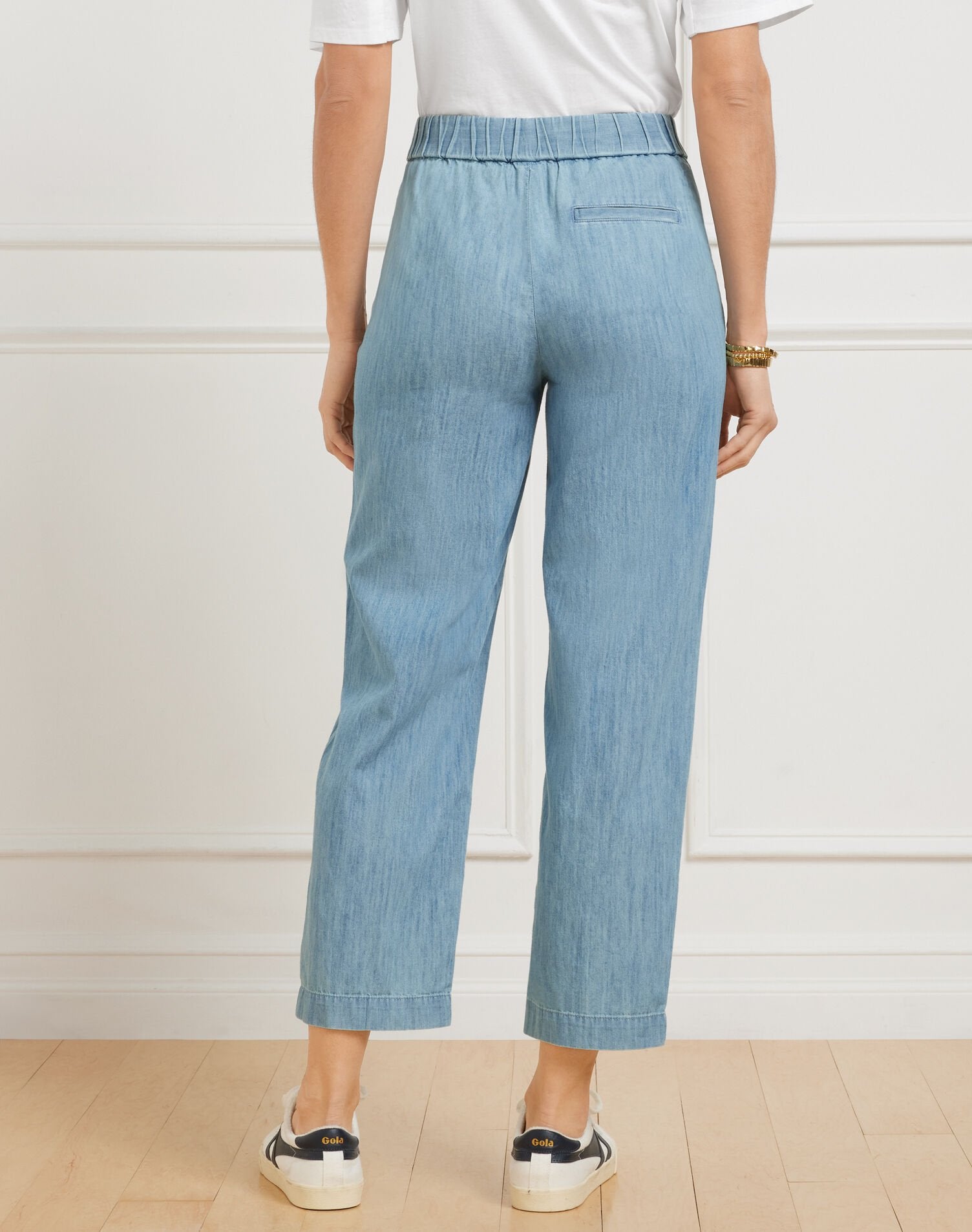 Our staple slim leg pants feature a sleek cropped hem that looks great with your favorite sneakers or sandals. Crafted with a comfortable elastic waist, slash front pockets and back welt pocket.