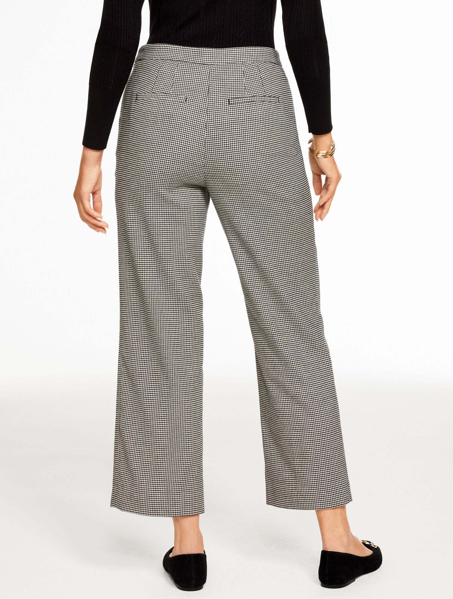 Say hello to your wear-forever pair. Our perfectly polished ankle length pants in a classic houndstooth pattern. Slim silhouette through the hip and thighs with a relaxed wide leg. This wardrobe essential looks great from AM to PM.