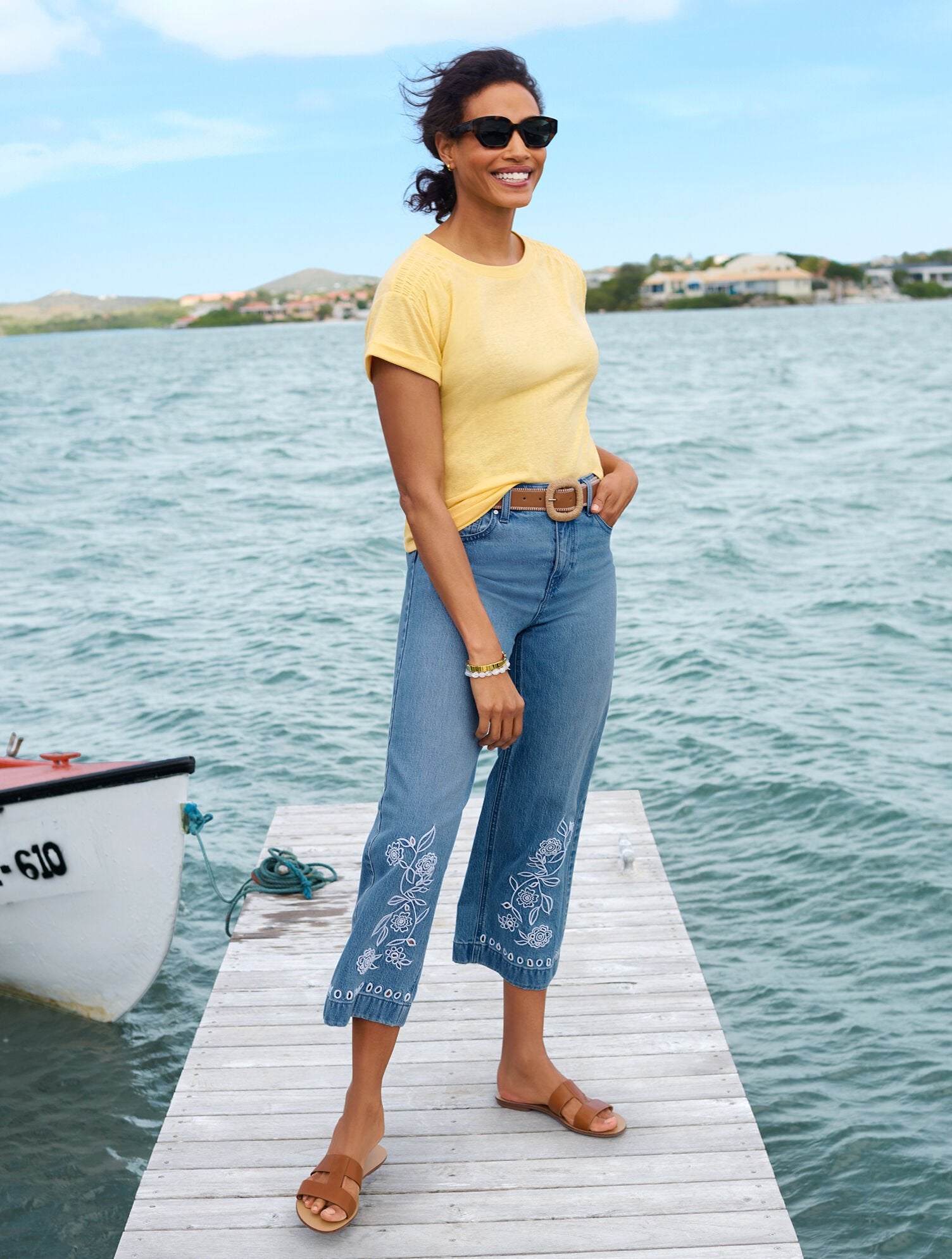 Pretty smocking at the shoulders adds a feminine touch to our much-loved tee. Crafted with a classic crewneck. The perfect addition to your spring and summer wardrobe.