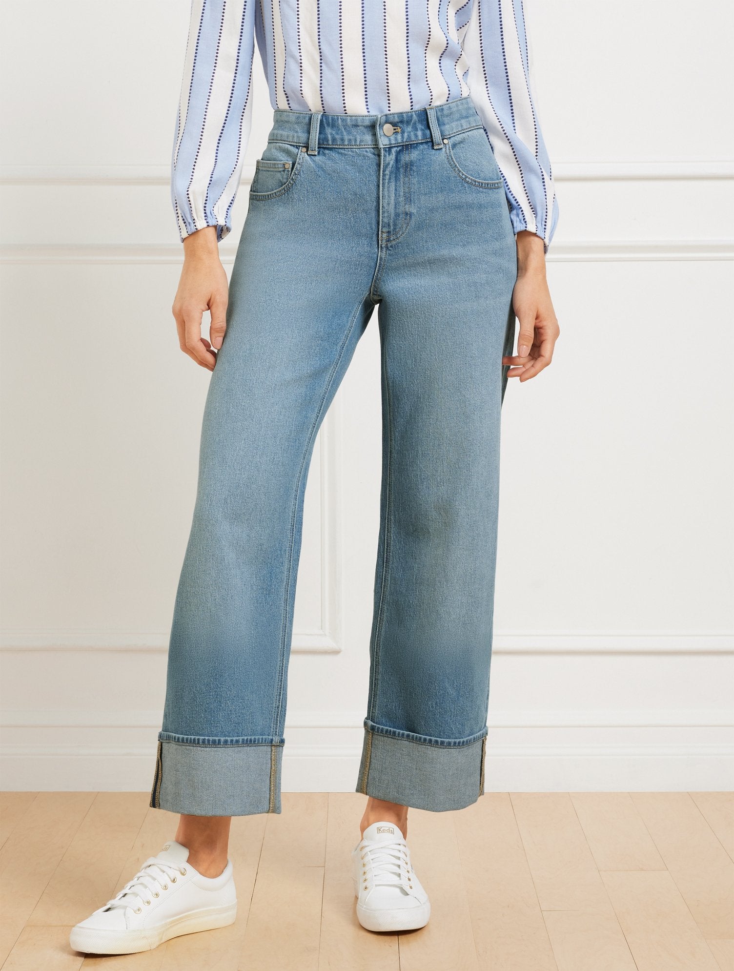 Sleek cuffed hems accentuate the straight ankle silhouette of these jeans. Crafted from our comfortable stretch denim with Five-Pocket styling.