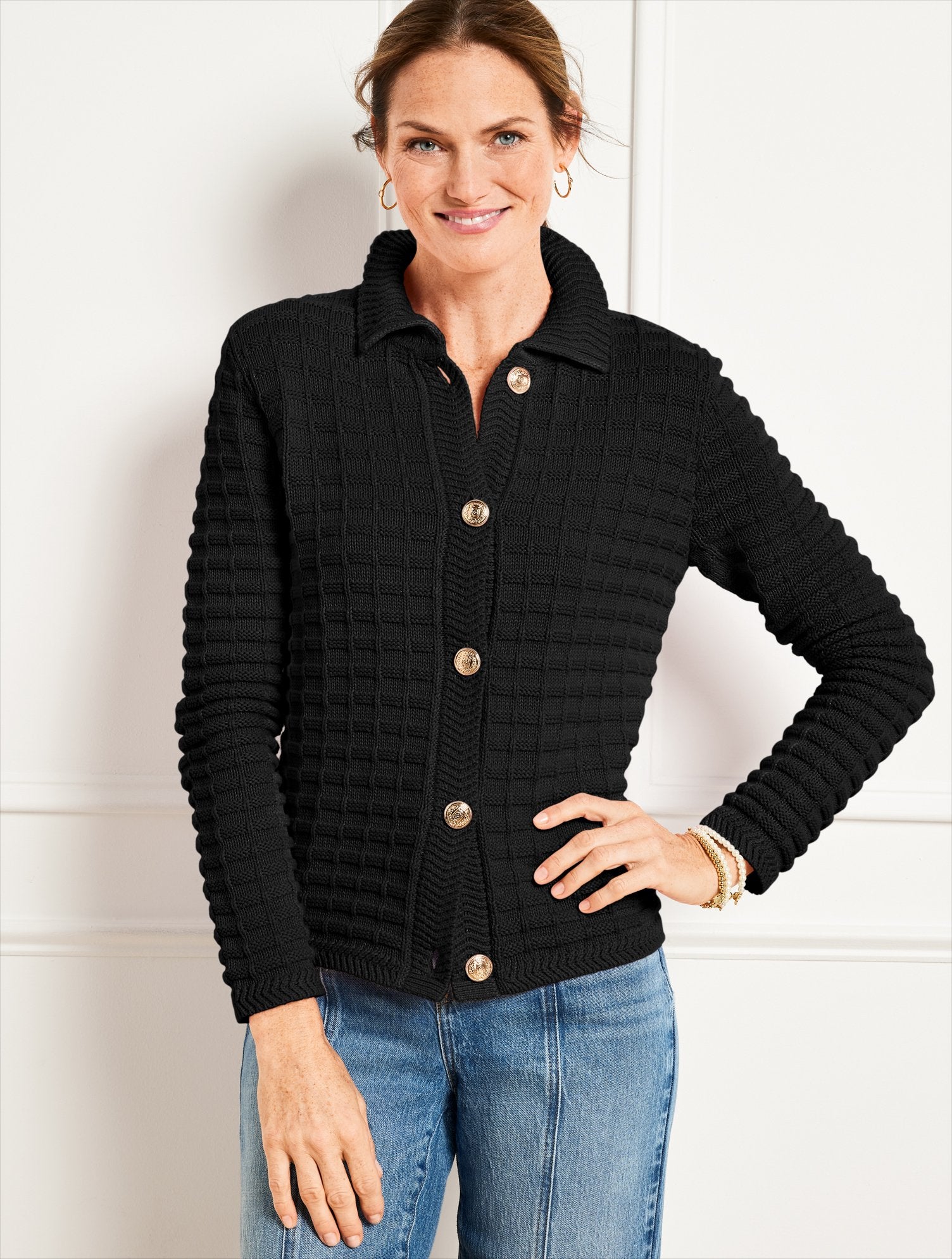 Our ultra-soft polo cardigan in a beautifully textured finish. A layer that travels effortlessly.