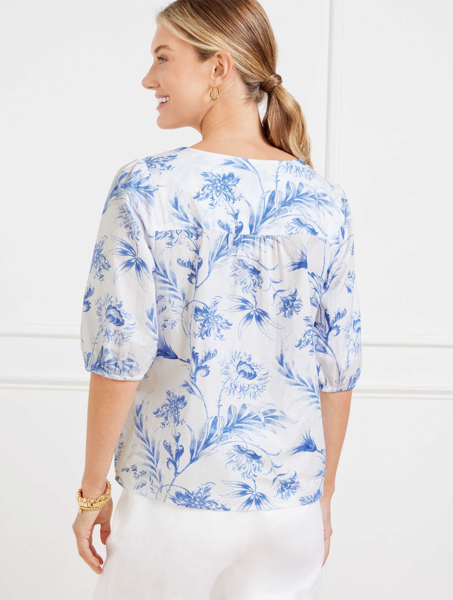 A romantic take on our ever-flattering top. Beautifully crafted with dual ties at the front. In an ocean flora print with easy elbow-length sleeves.