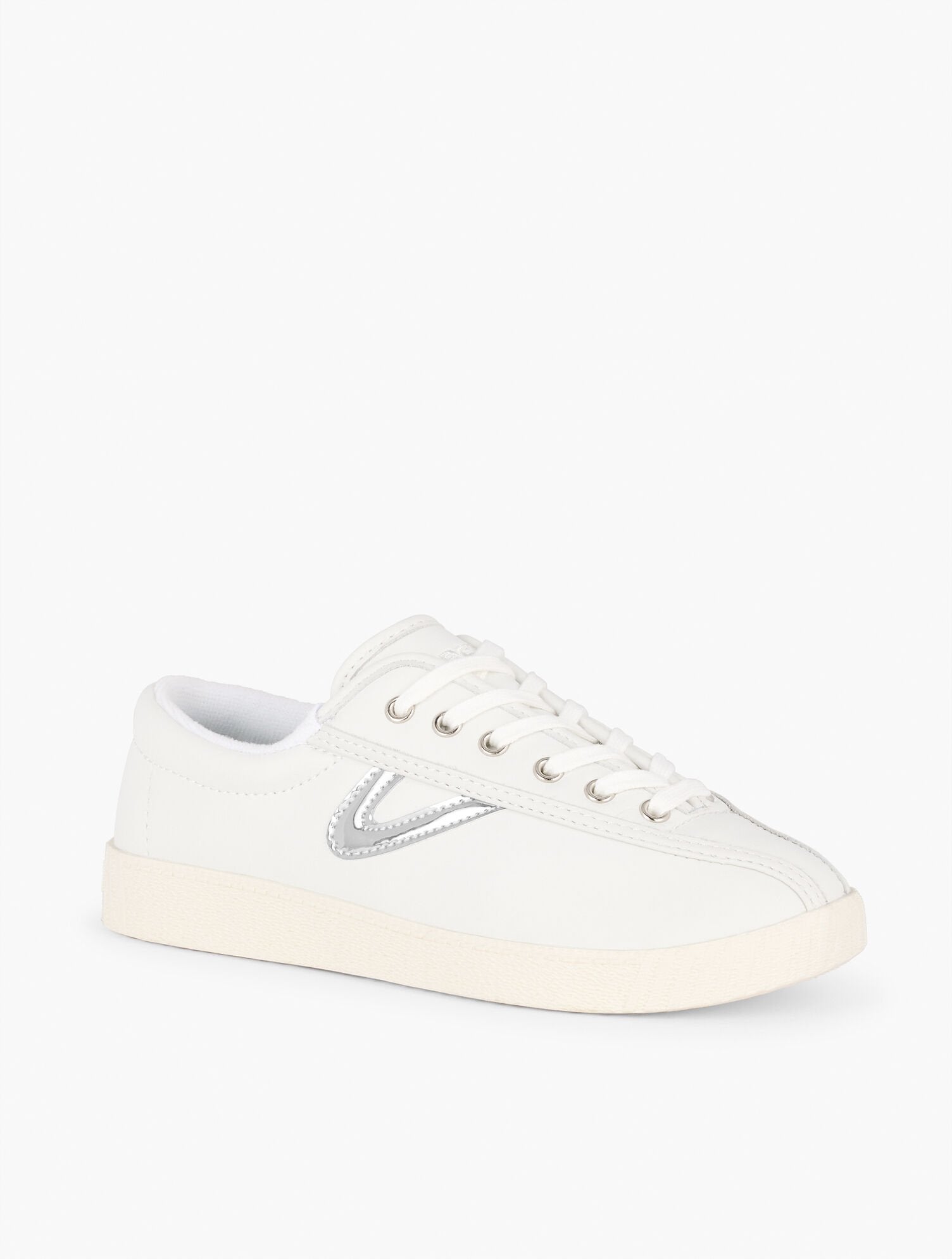 Versatile and timeless. Complete your sporty-chic outfits with these goes-with-everything lace up sneakers. Crafted from leather with comfortable cushioning.