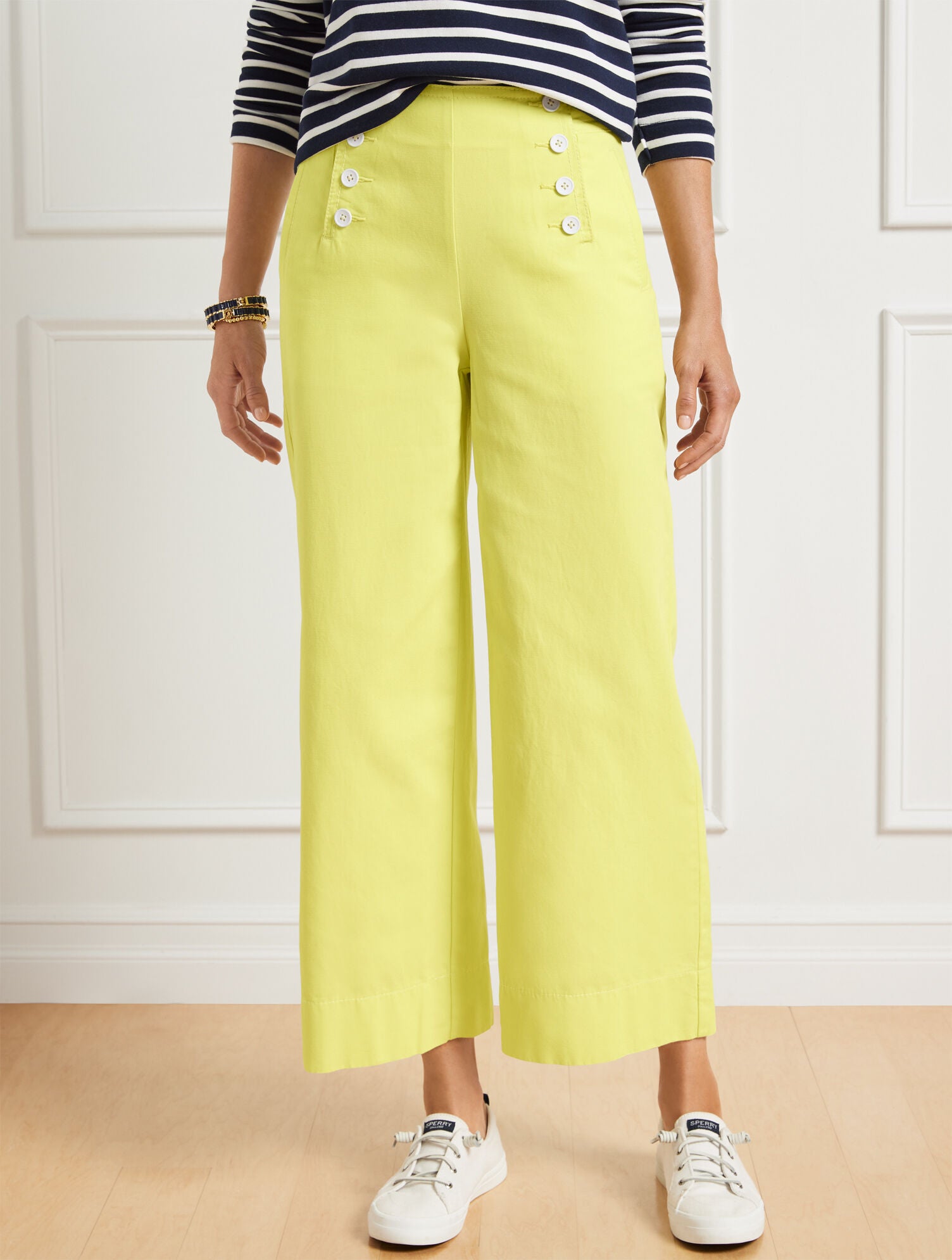 Our flattering wide leg pants in an ankle-length silhouette. The ultimate in comfort and style. In our crisp, cotton-canvas fabric. Sailor buttons at the front complete the maritime-inspired look. Wear-to-work (and after) perfection.
